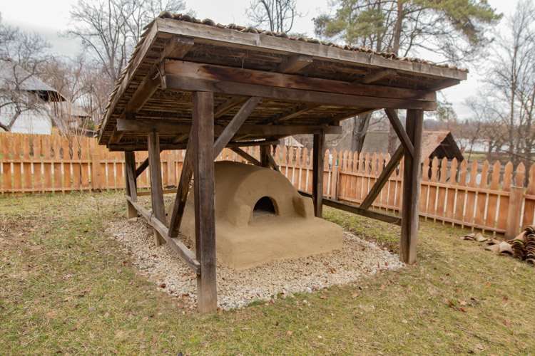 Construcţie anexă; cuptor semisferic (schelet de nuiele; umplutură de pământ cu paie şi bălegar) cu soclu de piatră, cărămidă, chirpici
