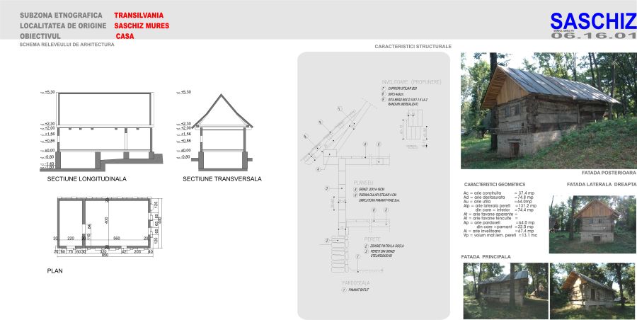 MATERIAL: -bârne masive de stejar; TEHNICA: -cioplit cu securea; IMBINARE: -blockbau