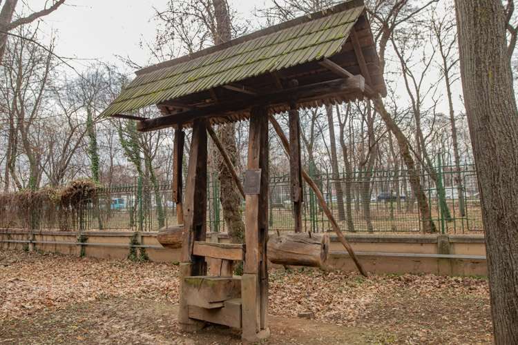 Instalaţie de prelucrat şi stors uleiul vegetal (teasc cu maie); forţa umană
