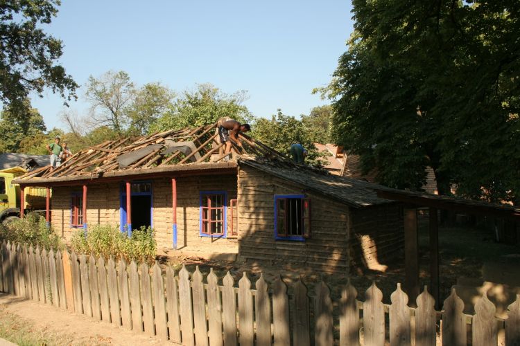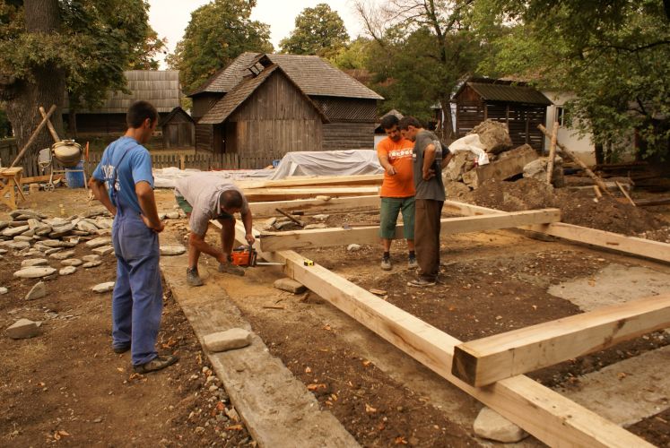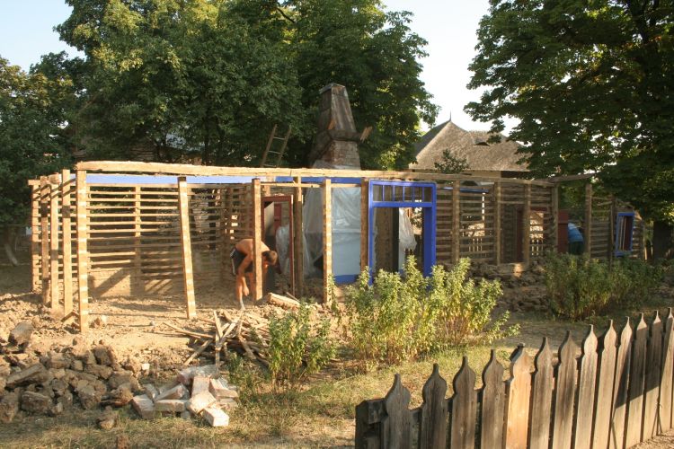 MATERIAL: -căpriori de brad; leţuri de brad; cuie din fier; TEHNICA: -cioplit; perechi de căpriori fixaţi pe cosoroabe; leţuri bătute orizontal; IMBINARE: tehnica fachwerk; schelet de lemn umplut cu pământ