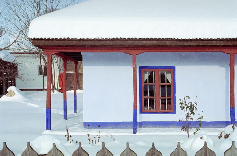 Construcţie pe un nivel; tindă; două camere; cămară; prispă deschisă