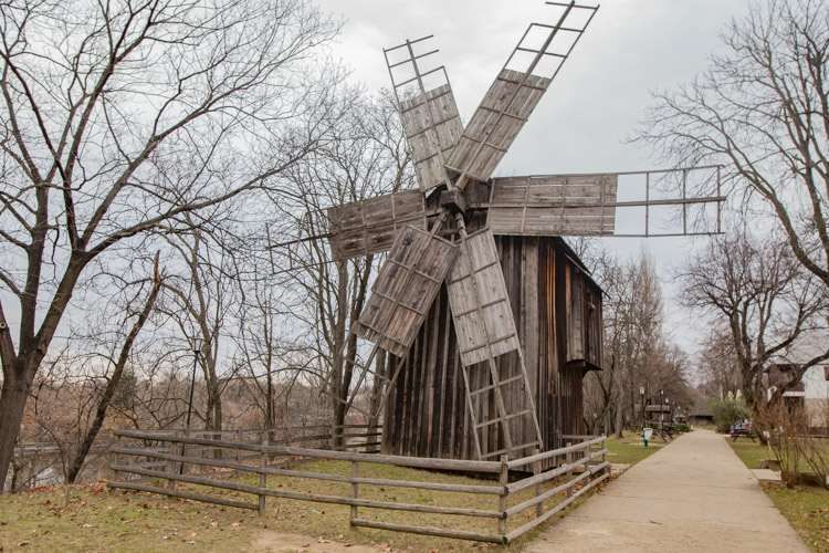 Instalaţie de morărit (moară de vânt cu şase aripi şi două mecanisme); energie eoliană