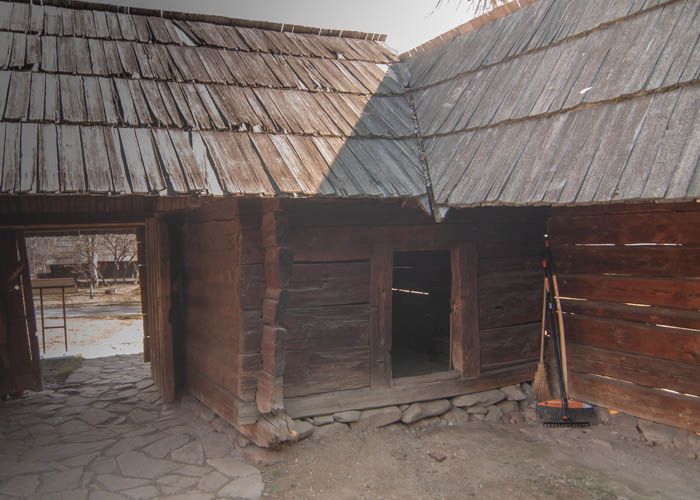 Pereţii colnelor şi ai construcţiilor sunt şi împrejmuire totodată. Poarta masivă închide întregul complex care are aspectul unei cetăţi feudale din lemn.