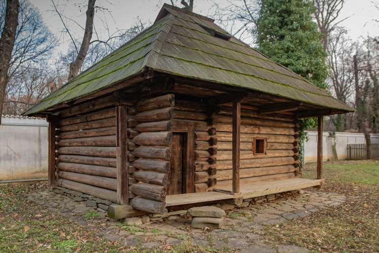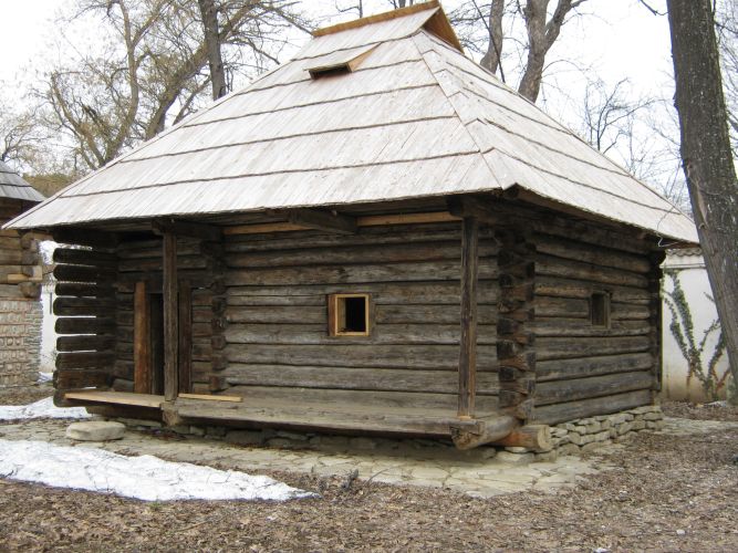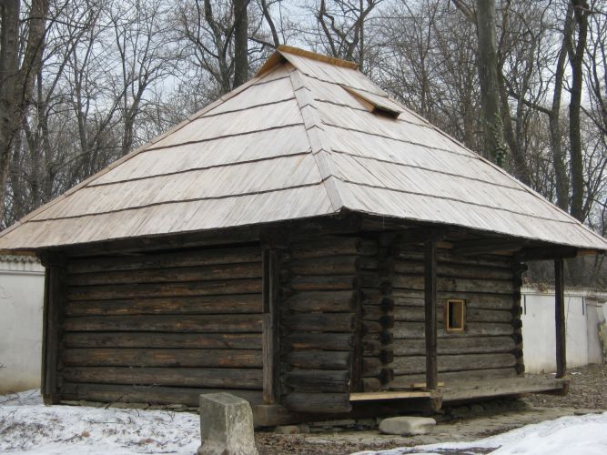 Casă cu un nivel; lemn de brad; acoperiş în patru ape; învelitoare din draniţă de brad