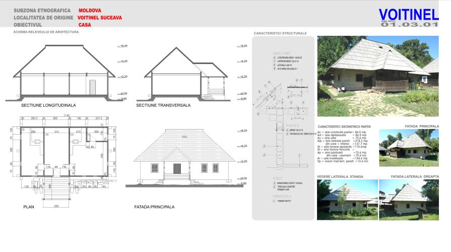 MATERIAL: -lemn de brad; TEHNICA: -arhaică; IMBINARE: -cununi de bârne cioplite pe 4 laturi