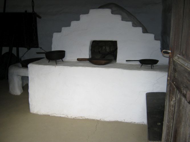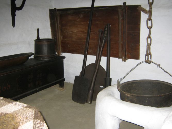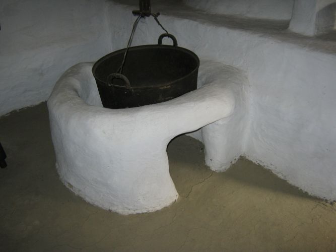 Scânduri de brad (atelier), pământ lipit (bucătărie).