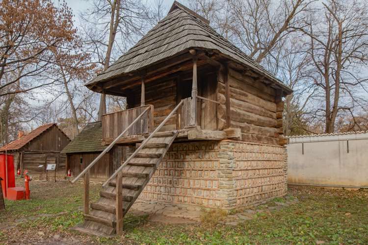 MATERIAL: -şindrilă stejar; TEHNICA: -bătută la două rânduri; şindrilă horjită (pană şi uluc); ÎMBINARE: -bârnele orizontale sunt împănate din loc în loc cu "melci" (cuie de lemn)