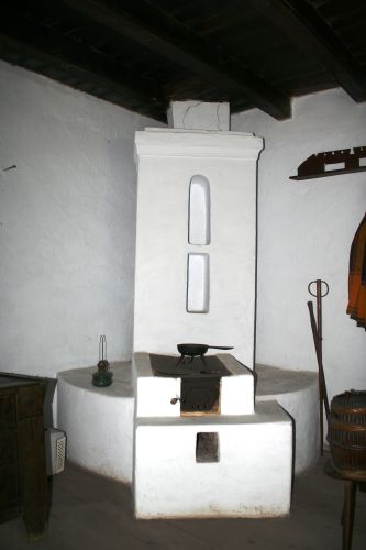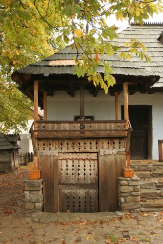 AMPLASAMENT: -laterală sub foişor şi bucătărie; MATERIAL (pereţi): -piatră de râu (la origine); cărămidă (în muzeu)