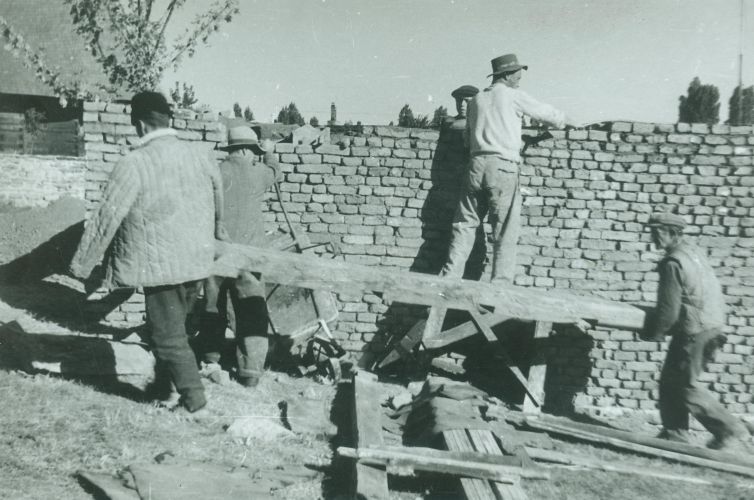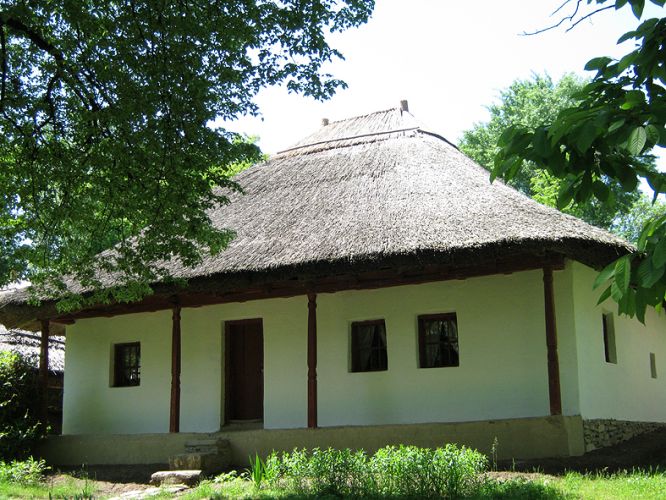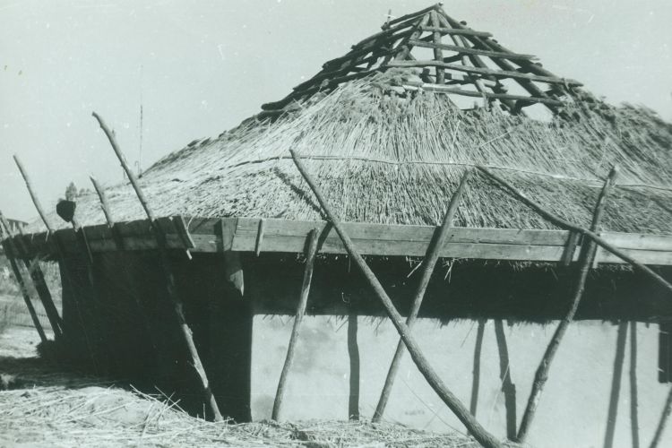 Casă cu patru încăperi şi tindă mediană; lut; cărămidă; acoperiş în patru ape; învelitoare din stuf