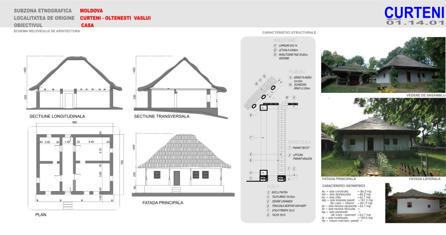 MATERIAL: -leţuri de brad; căpriori de brad; TEHNICA: -căpriori sprijiniţi pe cosorabe; leţuri fixate pe căpriori în cuie de fier; IMBINARE: