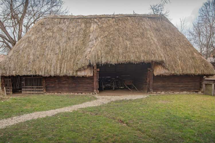 MATERIAL: -"jipi" (snopi) de secară; TEHNICA: -împletit; legat pe leţuri în rânduri succesive; îndesat snopii cu "lopăţica" (presă de lemn); îndreptat poala cu foarfeca de iarbă; greblat; ÎMBINARE: -cununi de bârne orizontale