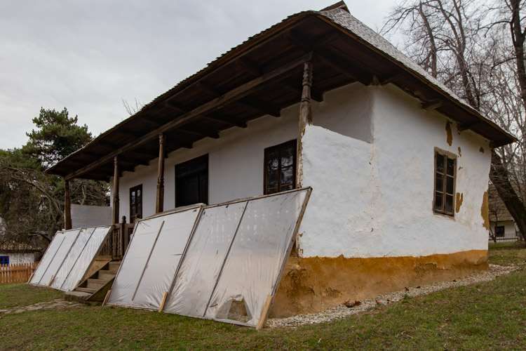 MATERIAL: -leţuri de brad; căpriori de brad; TEHNICA: -căpriori sprijiniţi pe cosoroabe; leţuri fixaţi pe căpriori cu cuie de fier; IMBINARE: