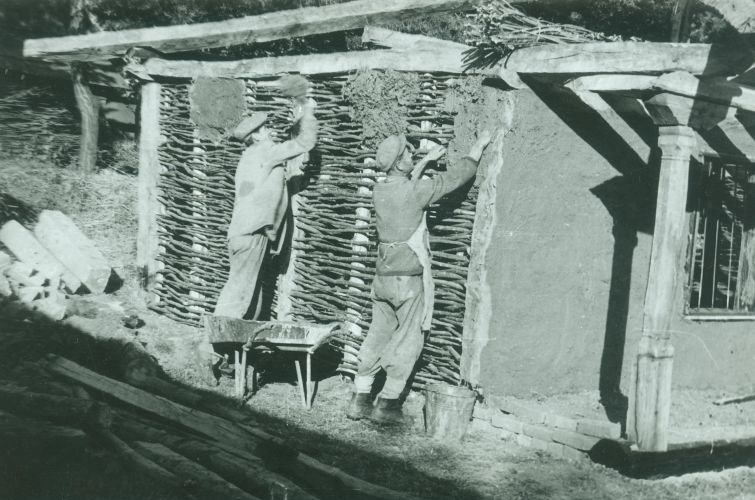MATERIAL: -furci de stejar; furci de salcâm; nuiele de carpen; nuiele de răchită; nuiele de fag; trestie; lut; paie; tencuială de var cu nisip; TEHNICA: -nuiele împletite pe un schelet de pari înfipţi în pământ, umplut cu lut cu paie şi pleavă; tencuit; lipit; văruit; IMBINARE: -fachwerk